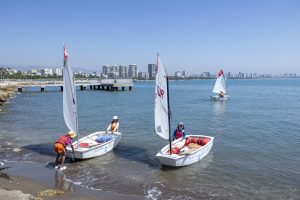 Mersin Büyükşehir Belediyesi Gençlik ve Spor Hizmetleri Dairesi Başkanlığı bünyesinde hizmet veren Babil Su Sporları Merkezi, Mersin’de denizle sporu bir araya getiren önemli bir buluşma noktası olarak hizmet vermeye devam ediyor. Babil Su Sporları Merkezi’nde yoğun ilgi gören kurslardan biri de yelken kursu. Ücretsiz olarak verilen 5 derslik eğitimlerin sonrasında kursiyerler ilgilendikleri spor dalında ilerlemeleri için kulüplere yönlendiriliyor.
